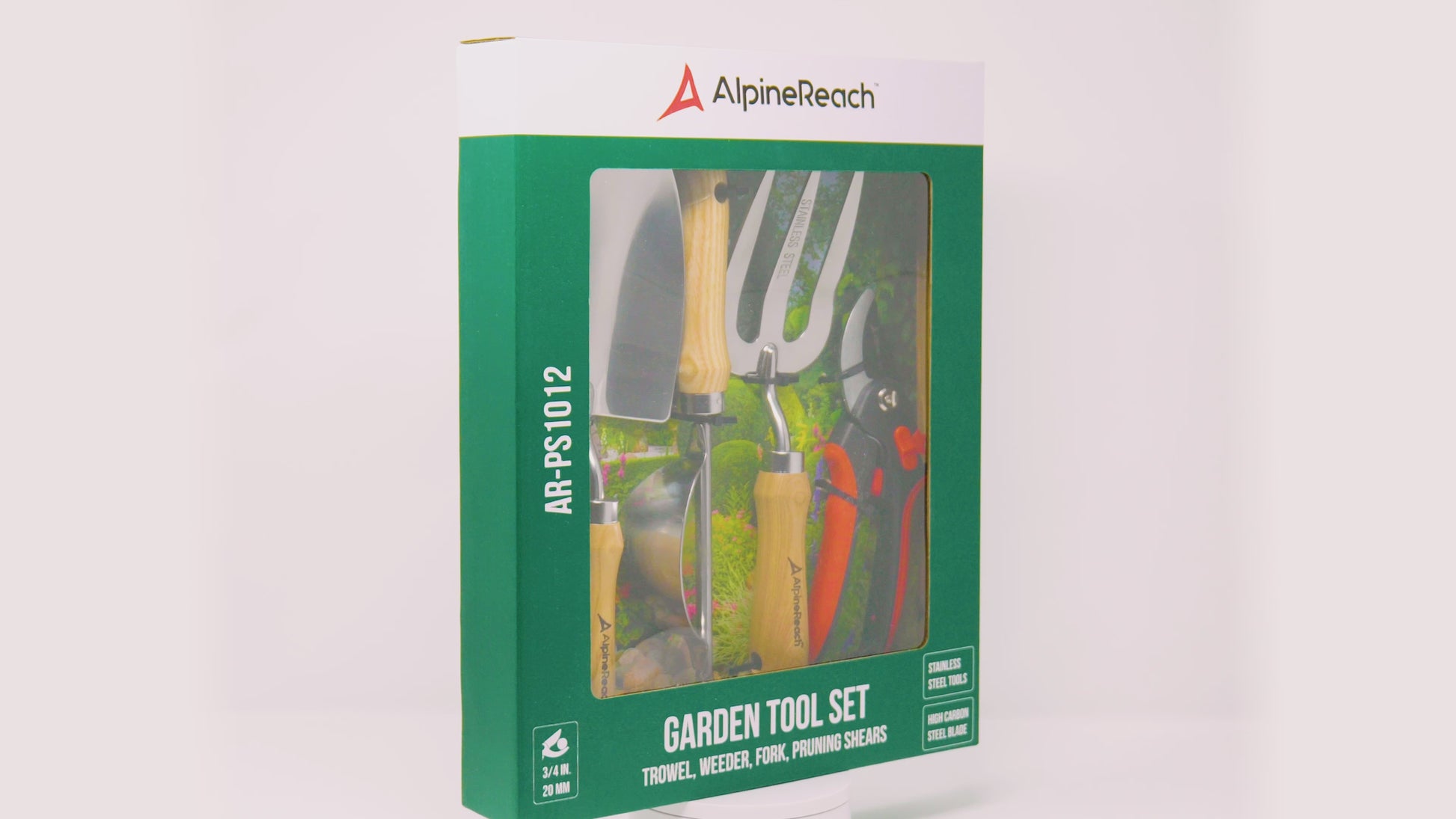 AlpineReach Gartengeräte Set, Premium 4 Stück, Bypass Gartenschere, Edelstahl-Gabel, Kelle, Unkrautstecher, Geschenkbox